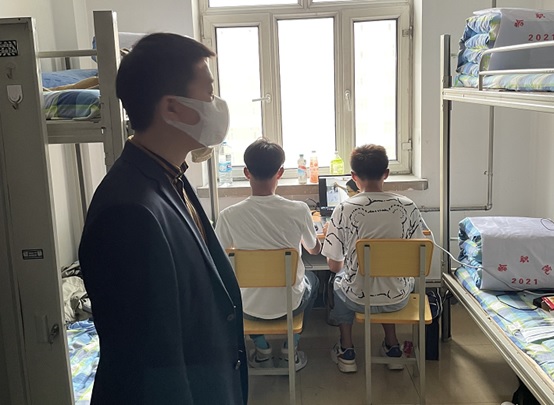 在哈职,不仅有迎难而上的老教师,“90后”的青年辅导员也主动请战,不甘示弱,成为留守校园的强大力量。艺术与设计学院“90后”辅导员关铭杨,刚刚新婚不久的他本应该多陪陪妻子,可当关铭杨得知学院封闭管理时,他顾不得多想,和妻子简单地告别后,就收拾好行李踏进了学校的大门。