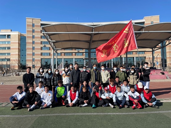 ▲封校期间带领学生进行足球运动