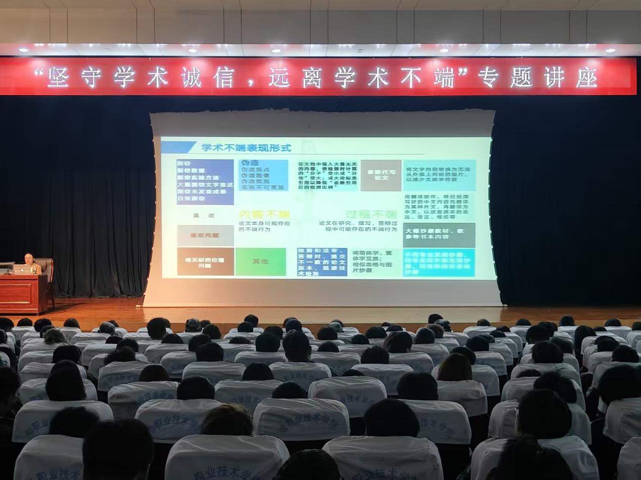 本次讲座是新生入学教育的重要组成部分,报告内容翔实、案例生动,具有深刻的警示教育意义,对我校持续强化科研诚信建设、营造严谨健康的学术氛围、培养高端技能人才,助力学校高质量发展具有重要指导意义。