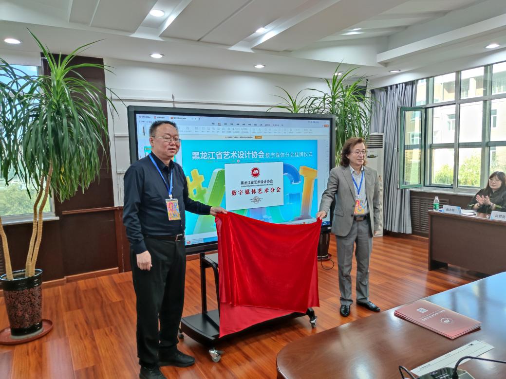 ▲黑龙江省艺术设计协会数字媒体艺术分会迁址哈尔滨职业技术大学的揭牌仪式