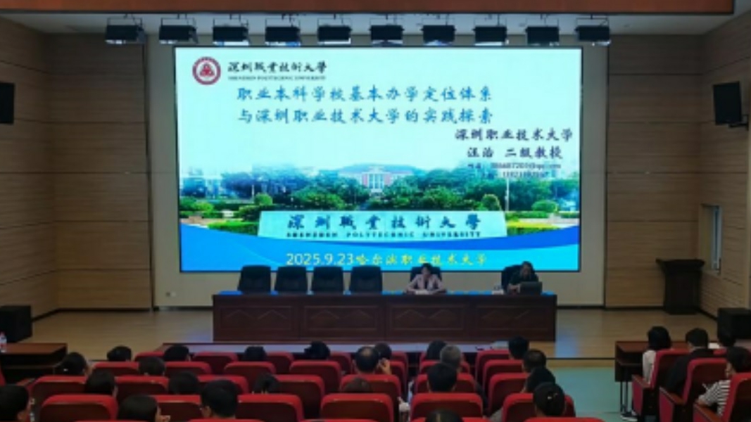 9月23日,我校开展“职业本科学校基本办学定位体系与深圳职业技术大学的实践探索”专题讲座。各二级学院负责人、校院两级督导及高建办、教务处等部门300余人参会。讲座邀请深圳职业技术大学二级教授汪治为主讲,副校长王欣主持。