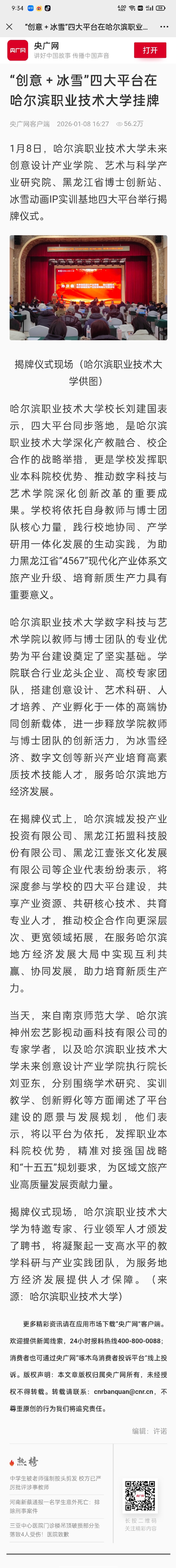 央广网:“创意+冰雪”四大平台在哈尔滨职业技术大学挂牌