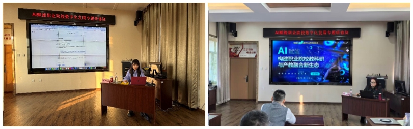 教学与科研融合模块聚焦课堂与实践。人工智能与机器人学院教授陈丽梅通过智能教学设计案例,阐释了AI如何驱动教师能力进阶与课堂教学重构。科研处处长张向辉结合产教融合与科研转化前沿案例,论述了AI技术如何赋能职业院校构建开放协同的创新生态。