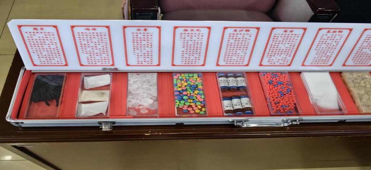 在互动环节,徐宇现场展示了常见毒品及新型毒品的仿真模型,让同学们近距离观察毒品的真实形态、伪装样式,手把手教大家如何通过外观、气味等细节鉴别伪装毒品,现场解答同学们关于禁毒知识的疑问。同学们积极参与、主动提问,现场气氛热烈活跃,有效提升了禁毒知识的吸收效果,进一步增强了自我保护能力。