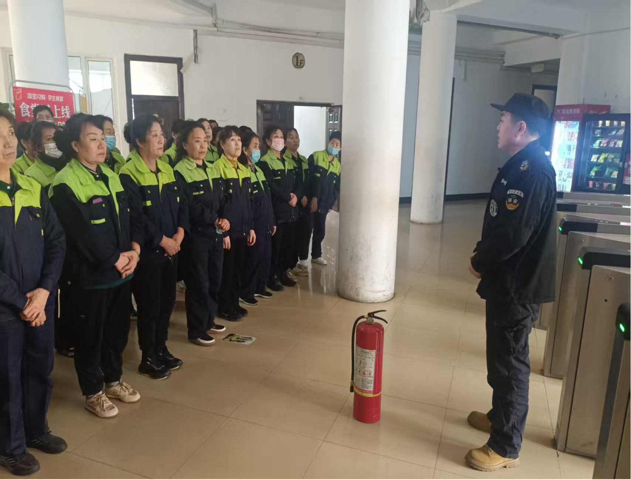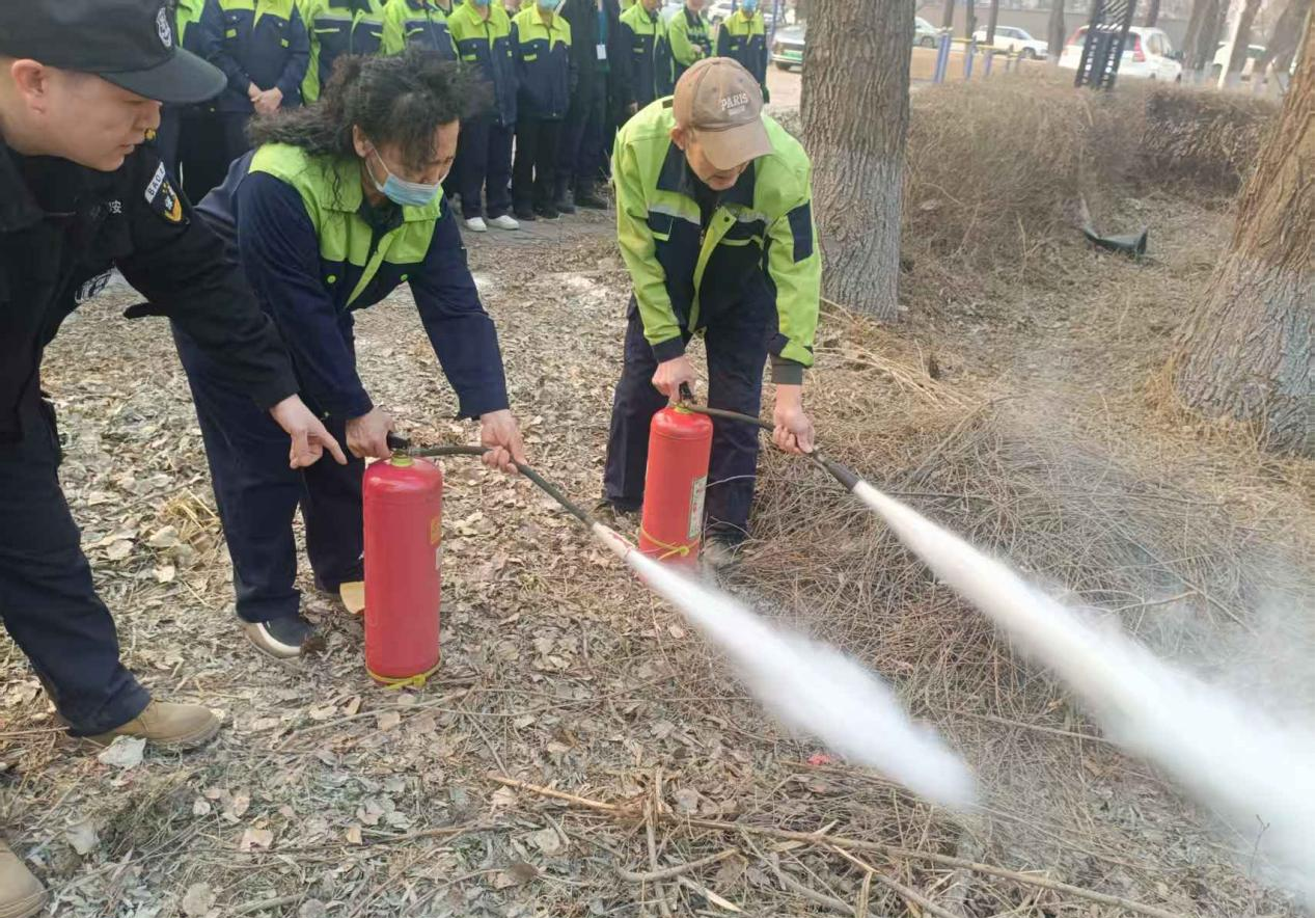 4月15日,学校保卫处组织开展物业保安保洁春季消防灭火专项演练,全体物业保安保洁人员参加。
