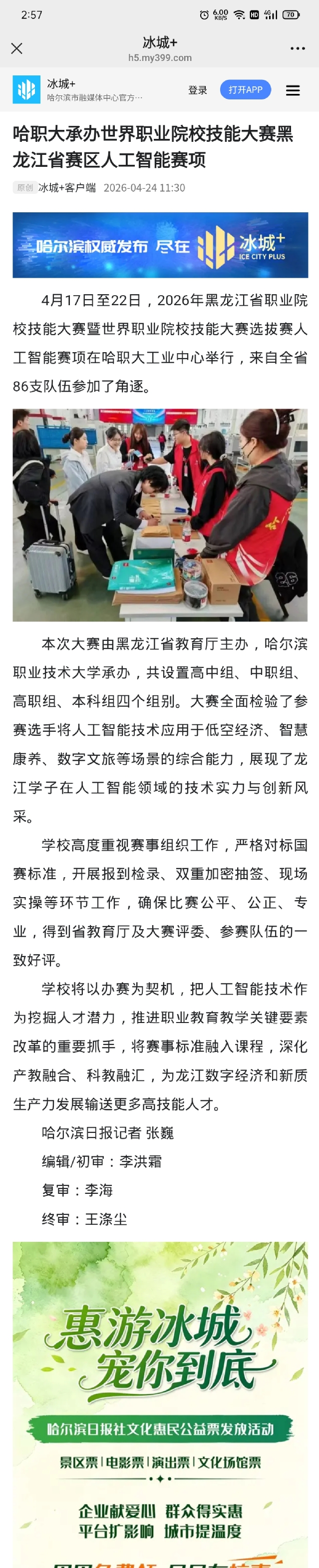 冰城+:哈职大承办世界职业院校技能大赛黑龙江省赛区人工智能赛项