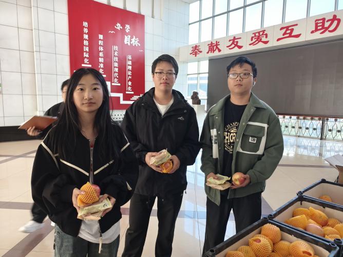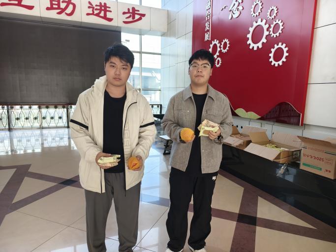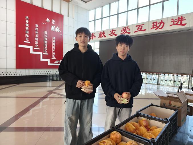 月饼是带有我校校徽标识的定制月饼,既有传统的五仁口味,也有受年轻人喜爱的凤梨口味,搭配着色泽鲜亮、象征 “平安顺遂” 的苹果,每份慰问品都承载着学院的细致关怀。学院学工办高莹和李娜娜老师亲手将这份 “双节祝福” 送到同学们手中,还不忘叮嘱大家注意饮食安全、合理规划假期时间。