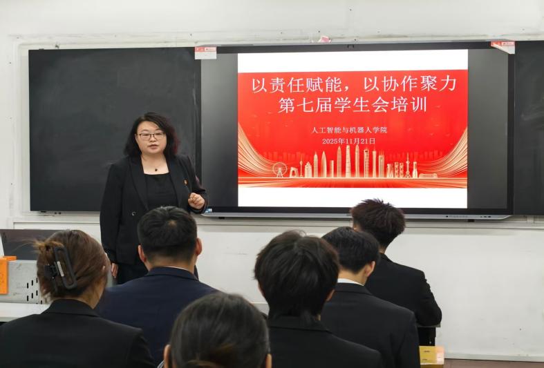 11月21日晚,人工智能与机器人学院第七届学生会干部第一次全体会议顺利举行,会上学工办主任高莹老师进行了专项培训,2024级全体学生会干部参加培训,为新学期学生工作的有序开展筑牢基础。