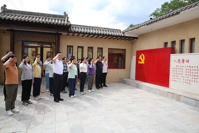 近日,山西省纪委监委机关部分党员在晋绥八分区(专署)旧址开展“传承红色基因,砥砺初心使命”主题党日活动。图为党员重温入党誓词。王鹏波 摄