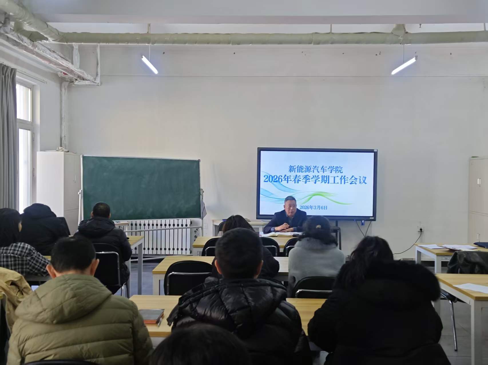为全面贯彻学校2026年春季学期工作部署,统一思想、明确任务、压实责任,确保新学期各项工作平稳有序、提质增效,新能源汽车学院于3月6日召开2026年春季学期工作会议。全体教职工参加会议,会议由党总支书记孟向伟主持。