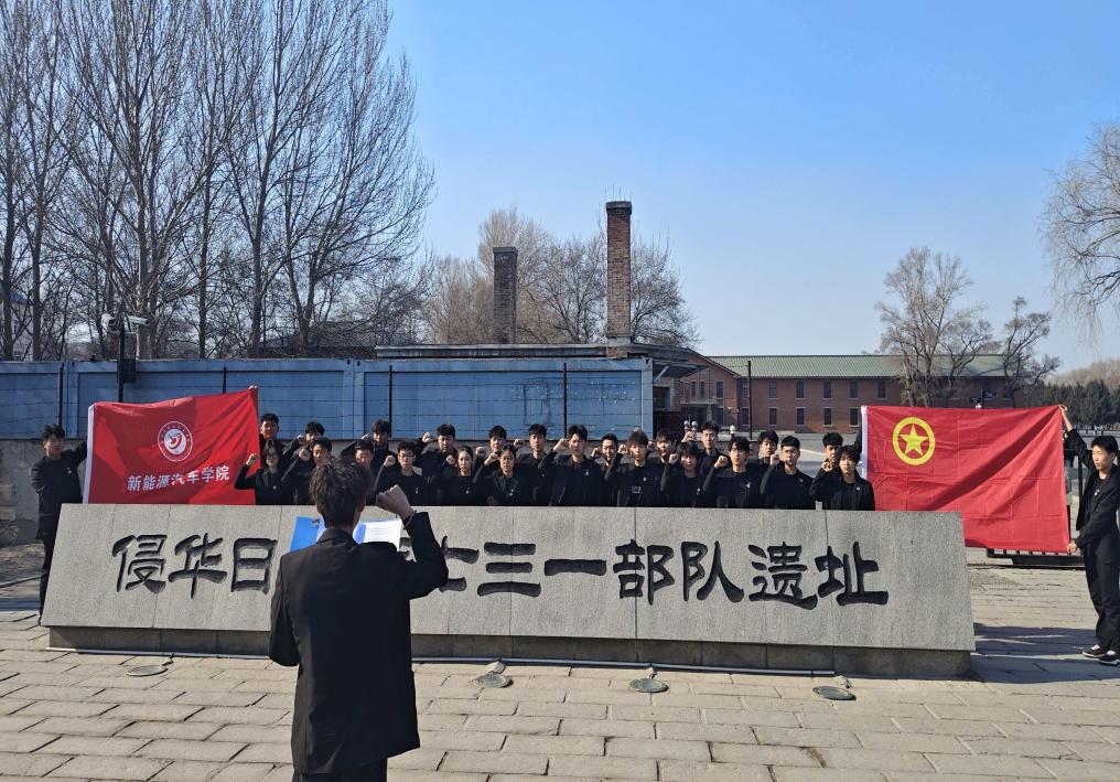 活动伊始,新能源汽车学院团总支副书记韩林谚发表致辞,号召全体团员干部铭记历史、珍爱和平,以史为鉴、勇担青年使命。随后全体人员为侵华日军731部队惨案中的遇难同胞默哀。默哀结束后,大家面向团旗庄严列队,在副书记的带领下重温入团誓词,铿锵誓言彰显了青年学子铭记国耻、奋勇争先的坚定信念。