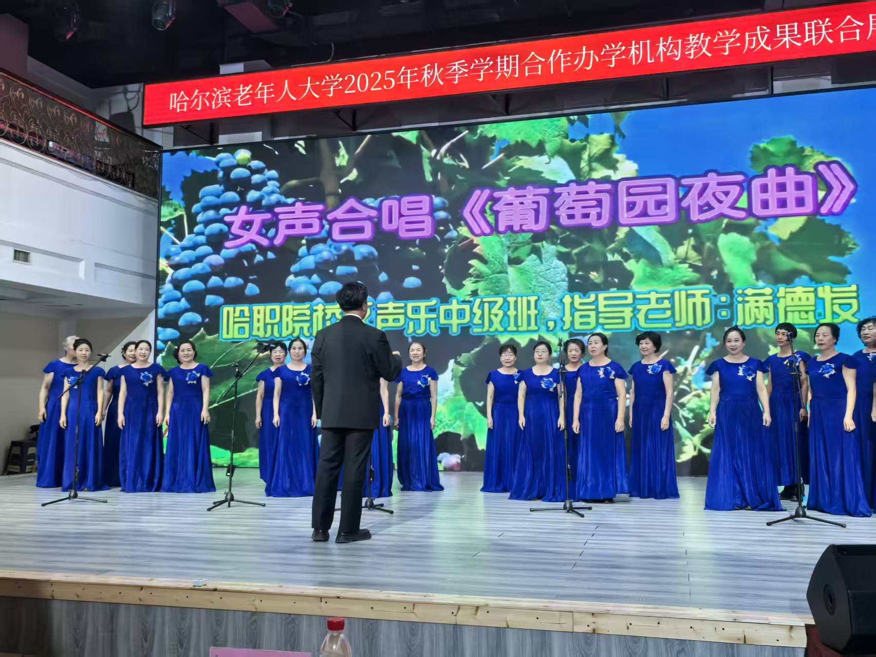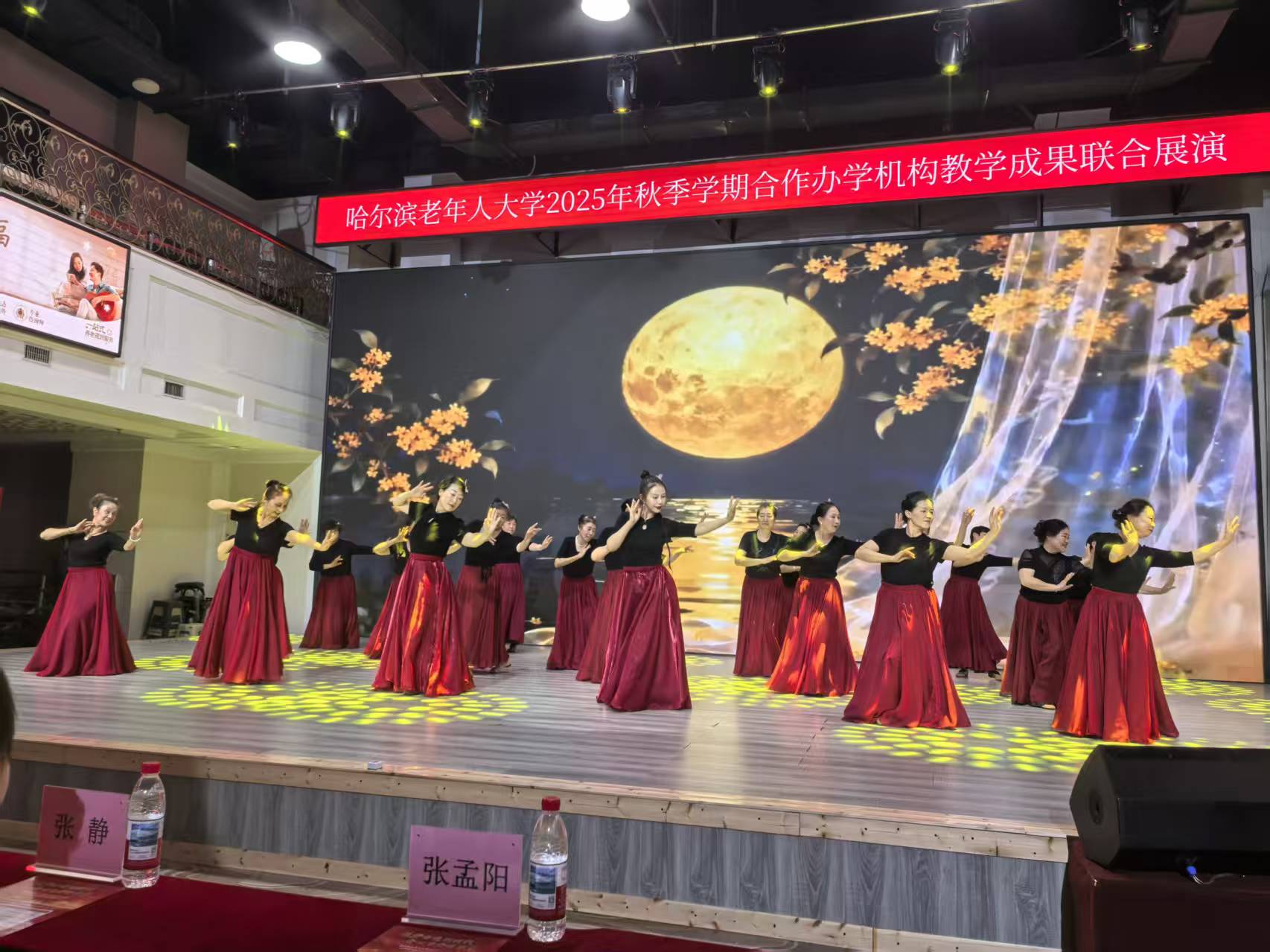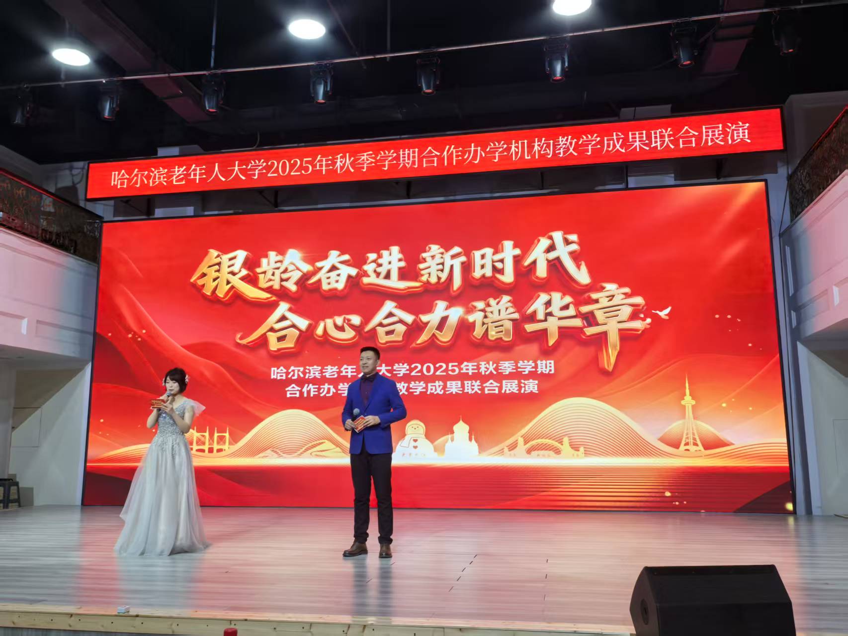 2025年12月12日,哈尔滨老年人大学在共享福智慧服务中心3楼演播大厅(哈尔滨市香坊区旭升街16-5号)组织举办了2025年秋季学期合作办学机构教学成果银龄奋进新时代、合心合力谱华章联合展演活动。