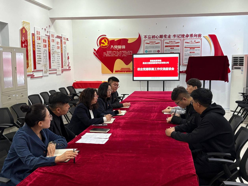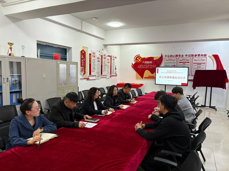 2025年9月19日,哈尔滨职业技术大学数智商贸学院党总支与黑龙江俄速通集智科技有限公司党支部校企党建联建启动仪式在哈尔滨职业技术大学老图书馆211党建活动室举行。数智商贸学院党总支副书记历炳媛、院长何岩松及骨干教师;黑龙江俄速通集智科技有限公司副总经理都宪宇、项目经理董泽、姜松岩,双方相关领导及教师出席本次会议。