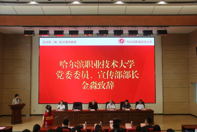 仪式在庄严的国歌声拉开帷幕。哈尔滨职业技术大学党委委员宣传部部长金淼代表学校致辞她指出,学校始终深化立德树人实践路径,依托社区服务、生态保护、助老扶幼等公益平台培育出大批优秀志愿者。此次与黑龙江省志愿服务联合会达成战略合作,标志着校社协同育人模式取得突破性进展。随着学雷锋志愿服务工作站的正式牌,学校构建起规范化实践教育新阵地更是探索新时代劳动教育与德育融合的创新范式。