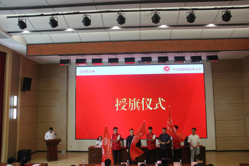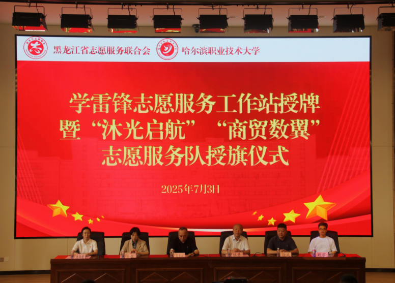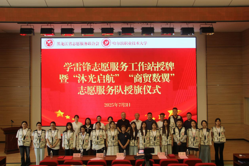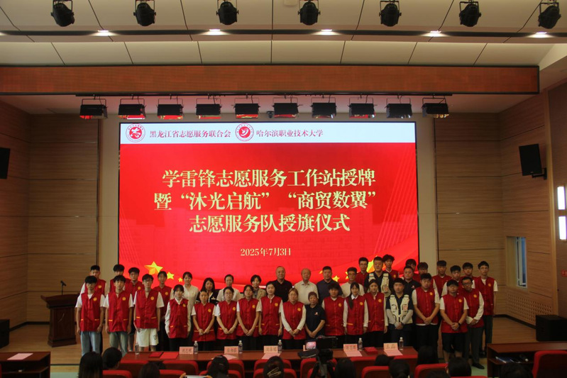 哈尔滨职业技术大学“学雷锋志愿服务工作站”授牌暨“沐光启航”“商贸数翼”志愿服务队授旗仪式