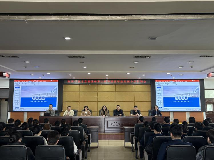 企业代表系统介绍了民航安检行业趋势、岗位技能要求及员工成长体系。宣讲结束后直接进入面试流程,2024级空乘和民航专业的257名学生参加了本次宣讲面试。