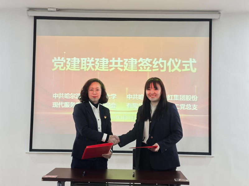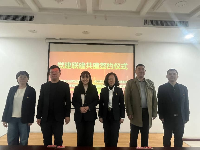 为进一步深化产教融合、凝聚校企协同育人合力,聚焦学校“双高”建设目标,积极服务“六个龙江”建设与“八个振兴”战略,持续深化校企各领域深度合作,充分发挥高校人才与科研方面的优势与企业实践平台长处。2026年4月10日,哈尔滨职业技术大学数智商贸学院党总支与哈尔滨中央红集团股份有限公司第二党总支在哈尔滨中央红集团股份有限公司举行校企党建联建签约仪式。数智商贸学院党总支副书记历炳媛、哈尔滨中央红集团股份有限公司第二党总支党务负责人战佳娜等领导及教师出席本次活动。