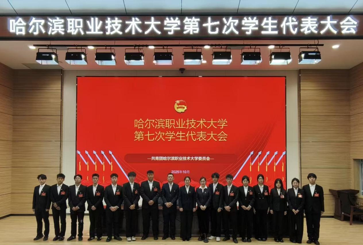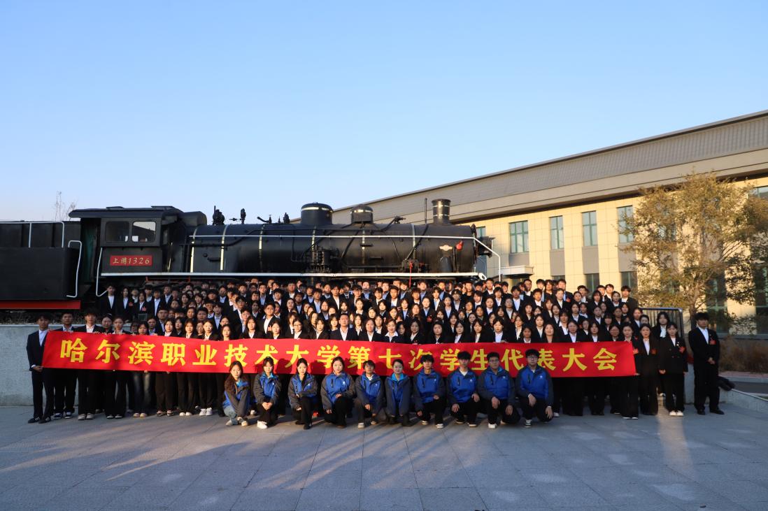 10月28日,哈尔滨职业技术大学第七次学生代表大会在机电楼报告厅胜利召开。校党委副书记兼工会主席夏青山、校团委负责人王晶莹、市学联驻会主席杨学枫出席,各二级学院团总支书记及215名学生代表参会。