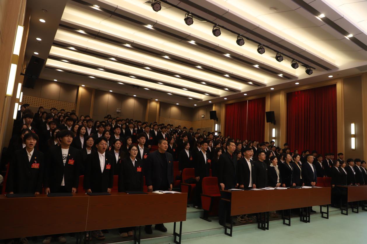 在庄严的国歌声中,哈尔滨职业技术大学第七次学生代表大会正式开始。