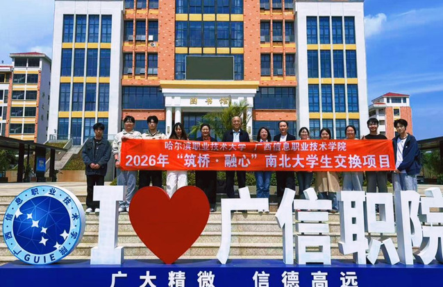 为深化校际交流合作,搭建师生互学互鉴平台,推动教育教学资源共享与人才培养质量协同提升,2026年3月12日,哈尔滨职业技术大学党委副书记夏青山带队,与学生工作处处长刘春媚、教务处学籍科主管杨清等一行,带领学校首批9名交换生赴广西信息职业技术学院报到,并开展座谈交流。此次交流活动以“筑桥·融心”为主题,围绕“专业课程共学、文化研学共赏、实践体验共育”展开,通过沉浸式学习与深度互动,助力两校专业建设与人才培育迈上新台阶。