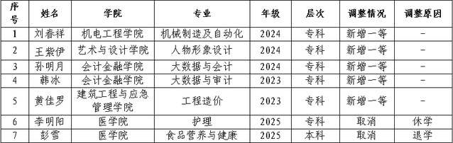 根据黑龙江省教育服务中心《春季学期困难学生动态调整》的工作要求,结合我校学生实际,根据《哈尔滨职业技术大学学生国家助学金评定办法》,现将2025-2026学年国家助学金春季学期受助资格调整名单予以公示。公示时间为2026年4月7日-4月9日。具体名单如下: