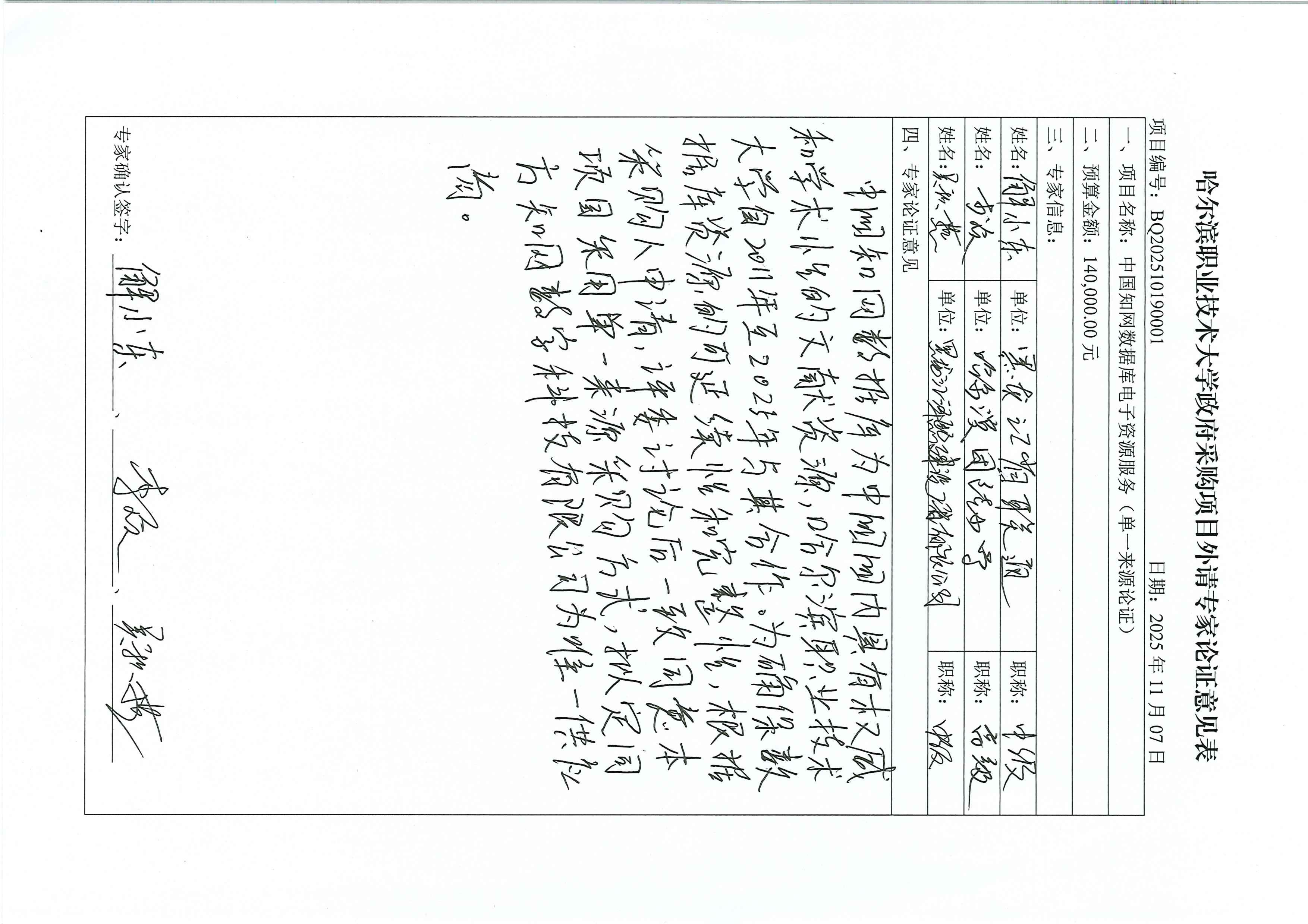 1.项目名称:哈尔滨职业技术大学中国知网数据库电子资源服务